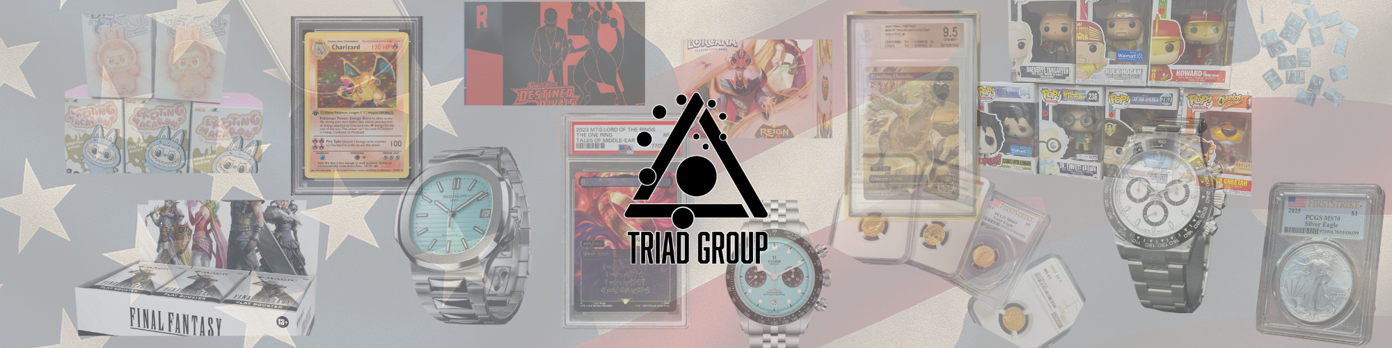 The Triad Group is a veteran-owned holdings company built on the belief that passion, precision, and integrity create long-lasting value — in both business and collectibles. We operate a growing portfolio of niche retail brands across four core sectors: trading cards, luxury timepieces, precious metals, and premium collectibles.
